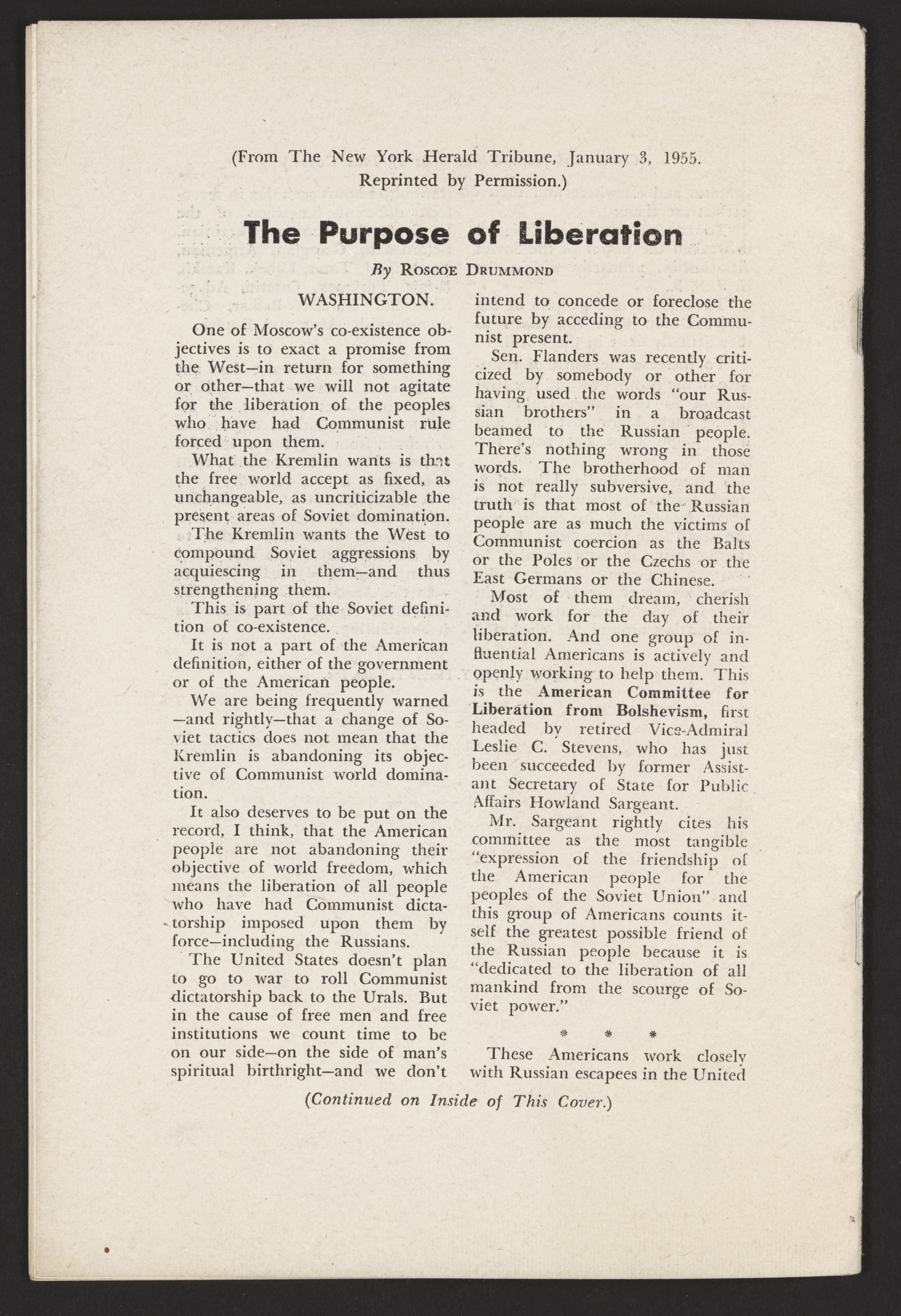 At first glance, this mid-1950s booklet from the American Committee for Liberation from Bolshevism, Inc. might seem like a straightforward bulletin about literary events in the USSR. In reality, “A Free Voice at the Soviet Writers Congress” stands as a vivid artifact of Cold War–era persuasion. Through its references to “Radio Liberation” broadcasts aimed at the Soviet Union, the pamphlet deftly weaves together cultural critique, anti-communist rhetoric, and calls for democratic freedoms in a society where such liberties were tightly controlled.