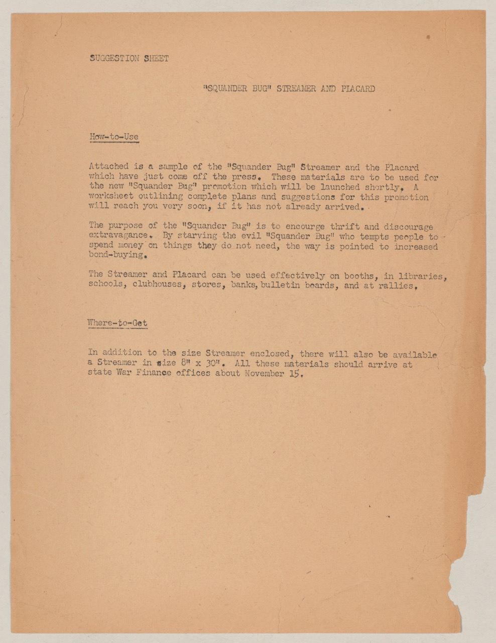 The attached suggestion sheet shows how the poster was part of a larger promotional push. Local chapters, libraries, and shops were encouraged to display the image and handbills where the public would see them. This multi-pronged approach integrated well with other War Bond drives, ensuring consistent, repeated exposure to the anti-waste message.