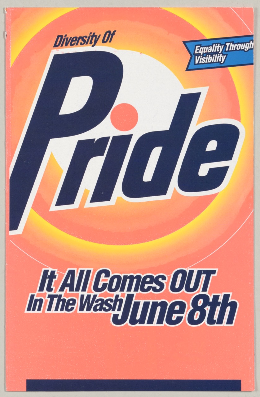 Published by the group Diversity of Pride, the pamphlet cleverly reworked household imagery—complete with a bubbling washing machine—to emphasize both the celebration of LGBTQ identity and the collective “fresh start” that Pride events can offer.