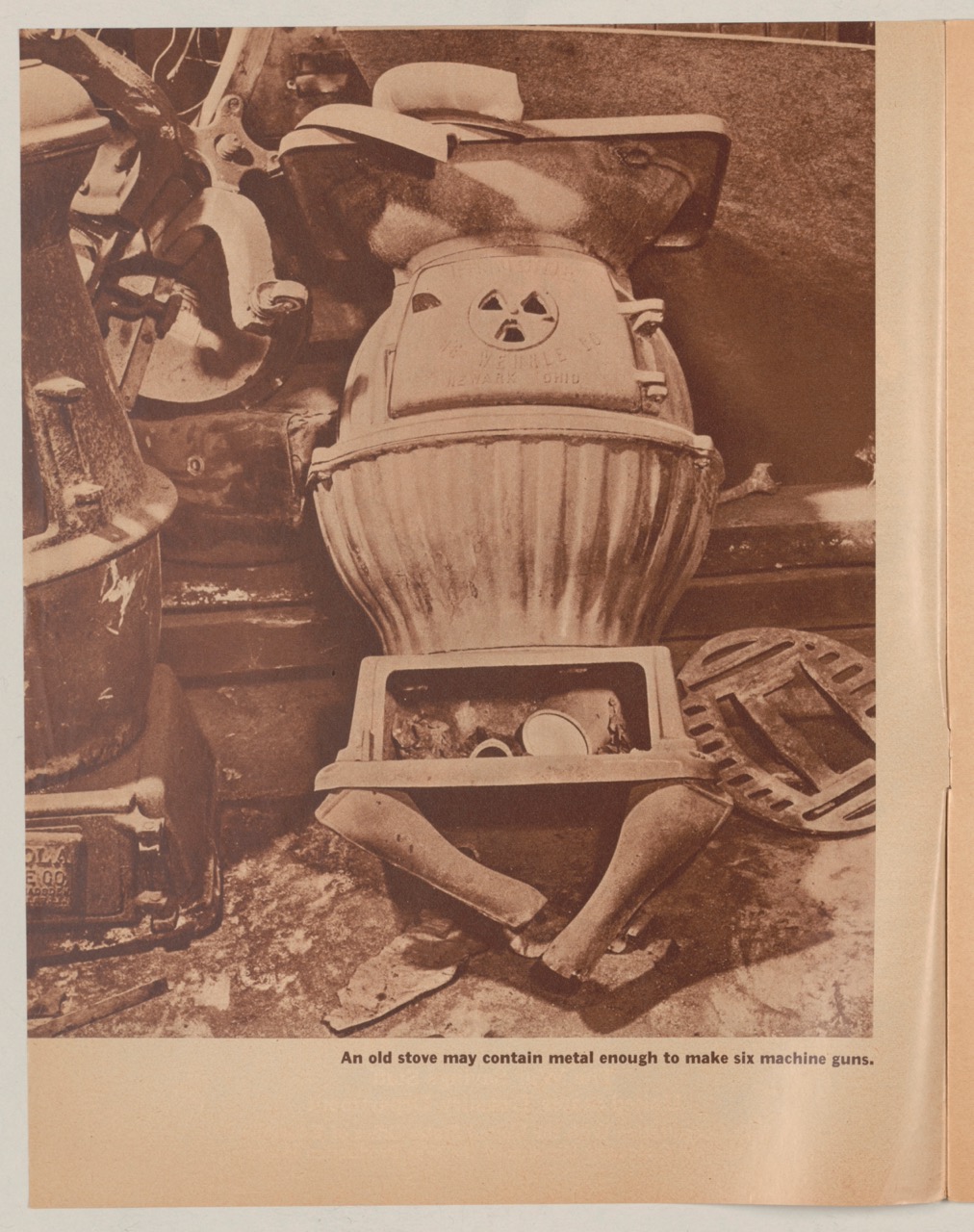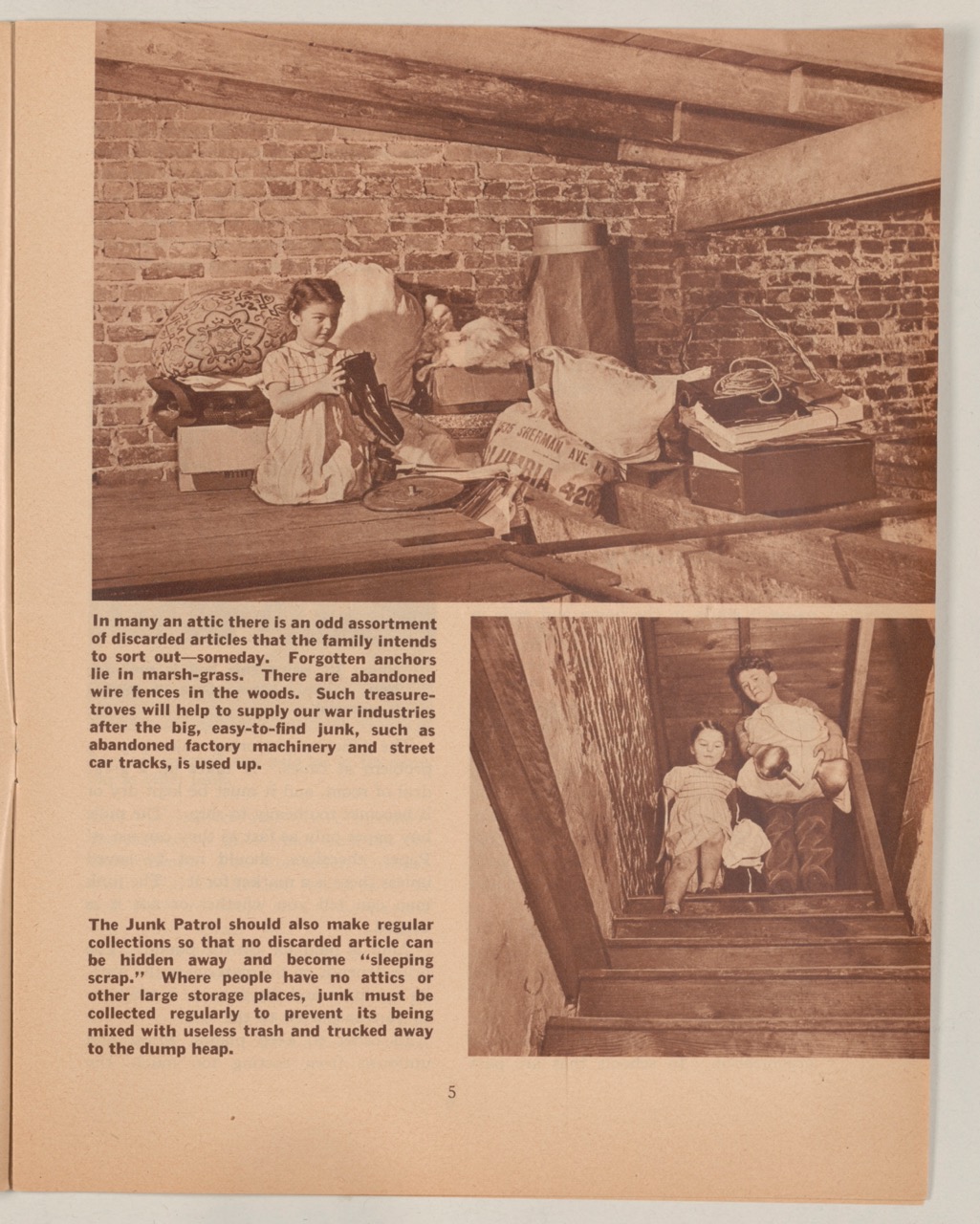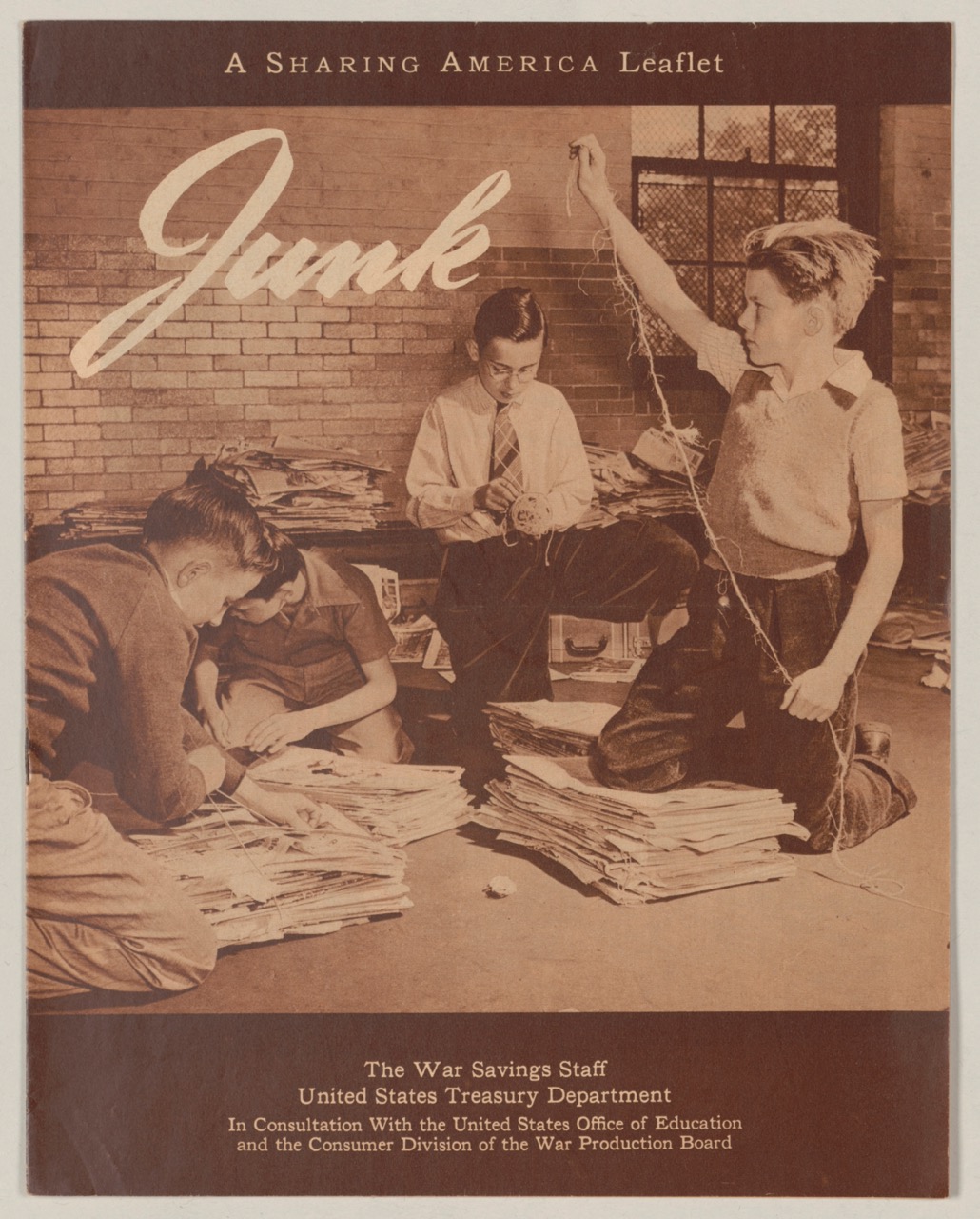 Published during World War II by the War Savings Staff of the U.S. Treasury Department, in consultation with the Office of Education and the War Production Board’s Consumer Division, this leaflet aimed to spur American youngsters into action. Titled simply “Junk,” it underscores how the smallest household scraps—from old metal hangers to discarded rubber tires—could be transformed into war materiel. Poignantly illustrated with early drawings by Theodor Seuss Geisel (Dr. Seuss), the piece captures a moment when recycling and resourcefulness were cast as patriotic imperatives.