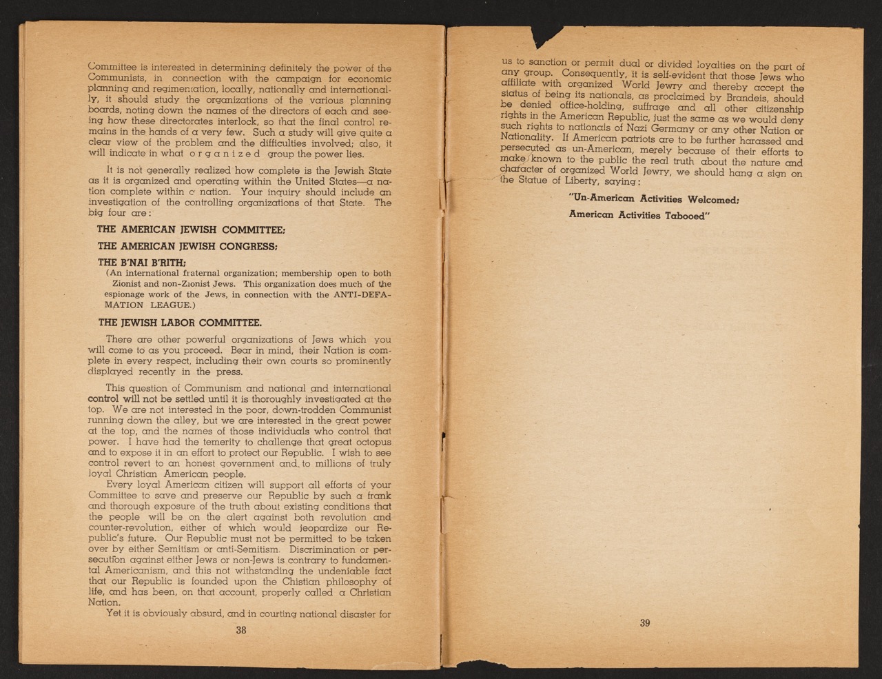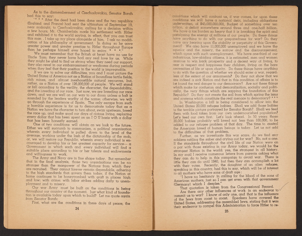 Pamphlets like this sought to influence a divided public. Isolationist sentiments were significant in some circles—especially before the bombing of Pearl Harbor in December 1941. Their resonance lay in the fear of being drawn into another destructive war and a perception that “America First” policies would be the best defense against ideological or economic subversion.