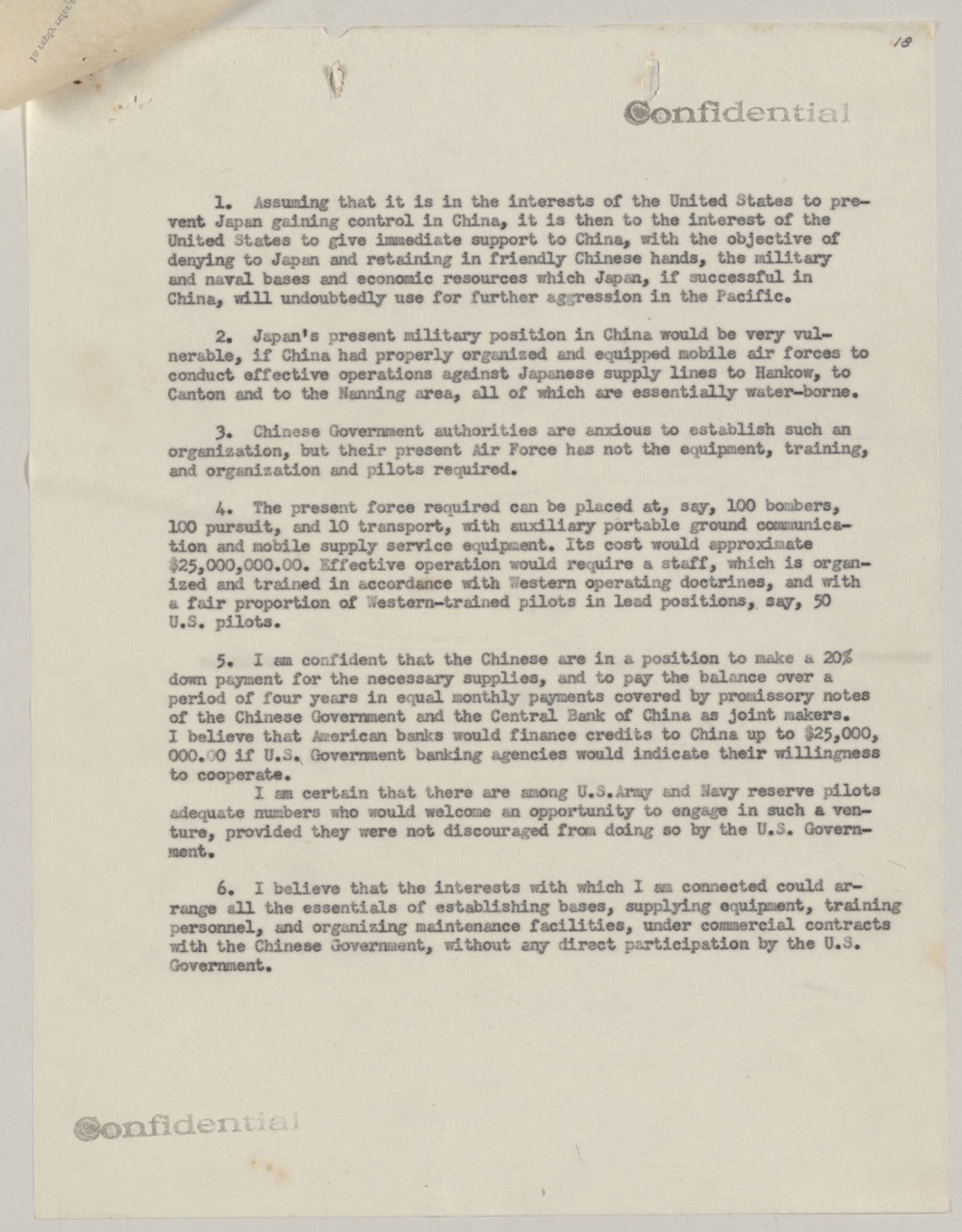 The copy underscores a strategic desire for covert participation. If successful, the approach would bolster Chinese resistance to Japanese advances without requiring overt declarations or congressional debate—an attractive option for officials wary of stoking isolationist opposition at home.