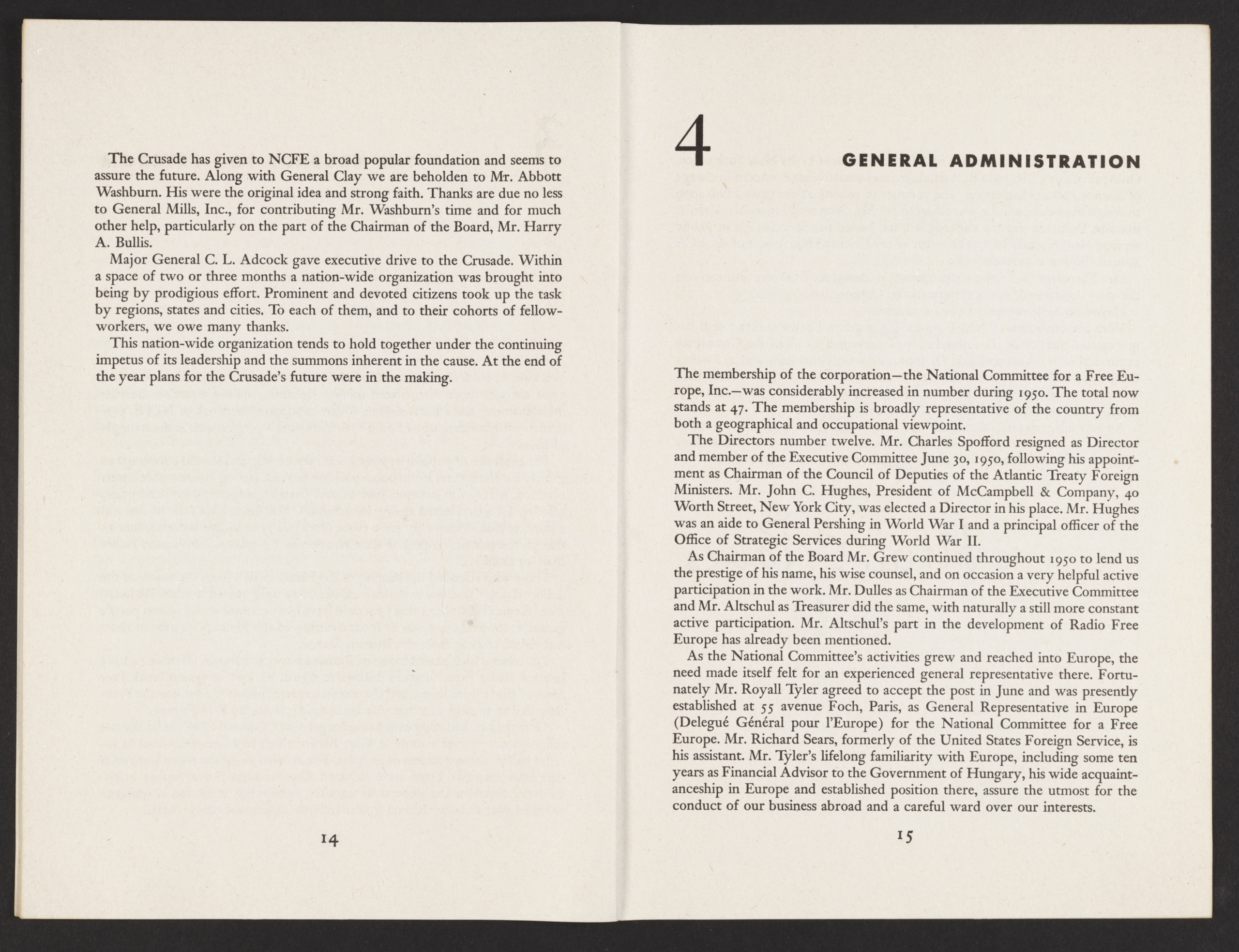 The “President’s Report” came at a pivotal moment. The Korean War had just begun; anti-Communist sentiment in the United States was intensifying; and international alliances were being tested. Within this pamphlet, the NCFE offered both a summary of its first full year of operations and a look ahead to how it planned to intensify its activities in 1951.