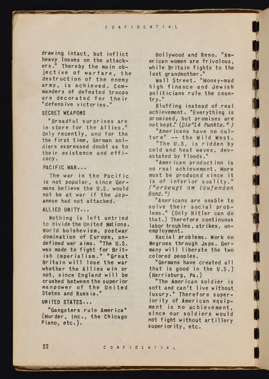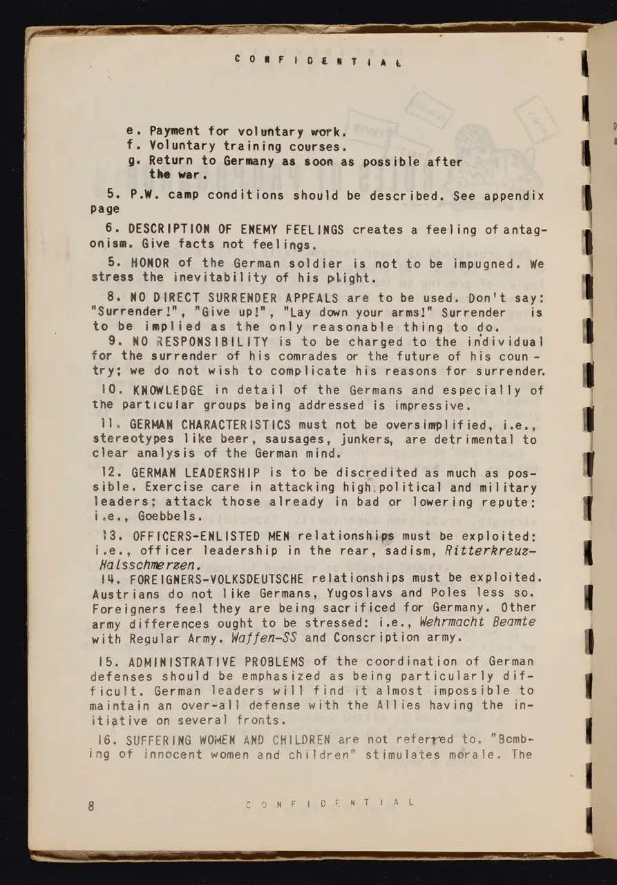 - WWII Context: The manual discusses undermining “morale” of the enemy soldier by appealing to fear, homesickness, or resentment toward superiors. The ultimate aim: sow enough doubt and confusion to erode unity.