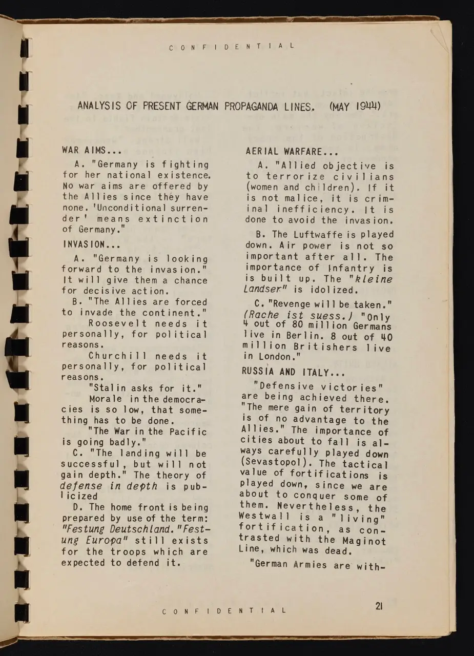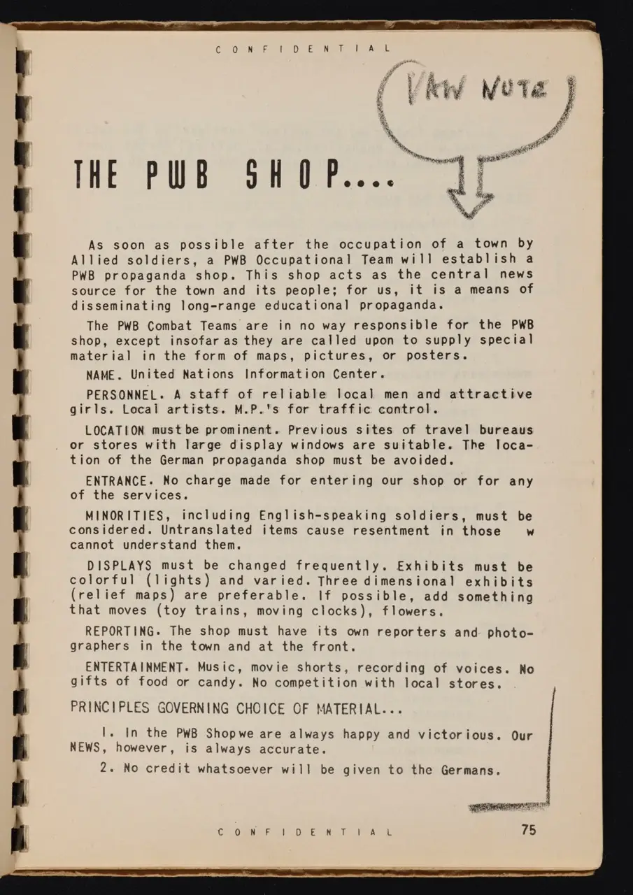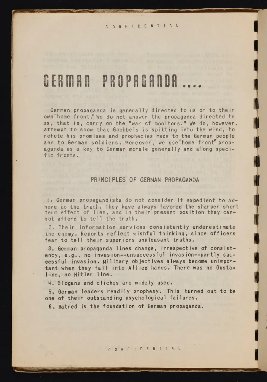 - WWII Context: The manual emphasizes tailoring propaganda to specific units, villages, or demographics. For example, leaflets aimed at frontline soldiers encouraged them to lay down their arms, while radio spots broadcast deeper behind enemy lines targeted the home front.
