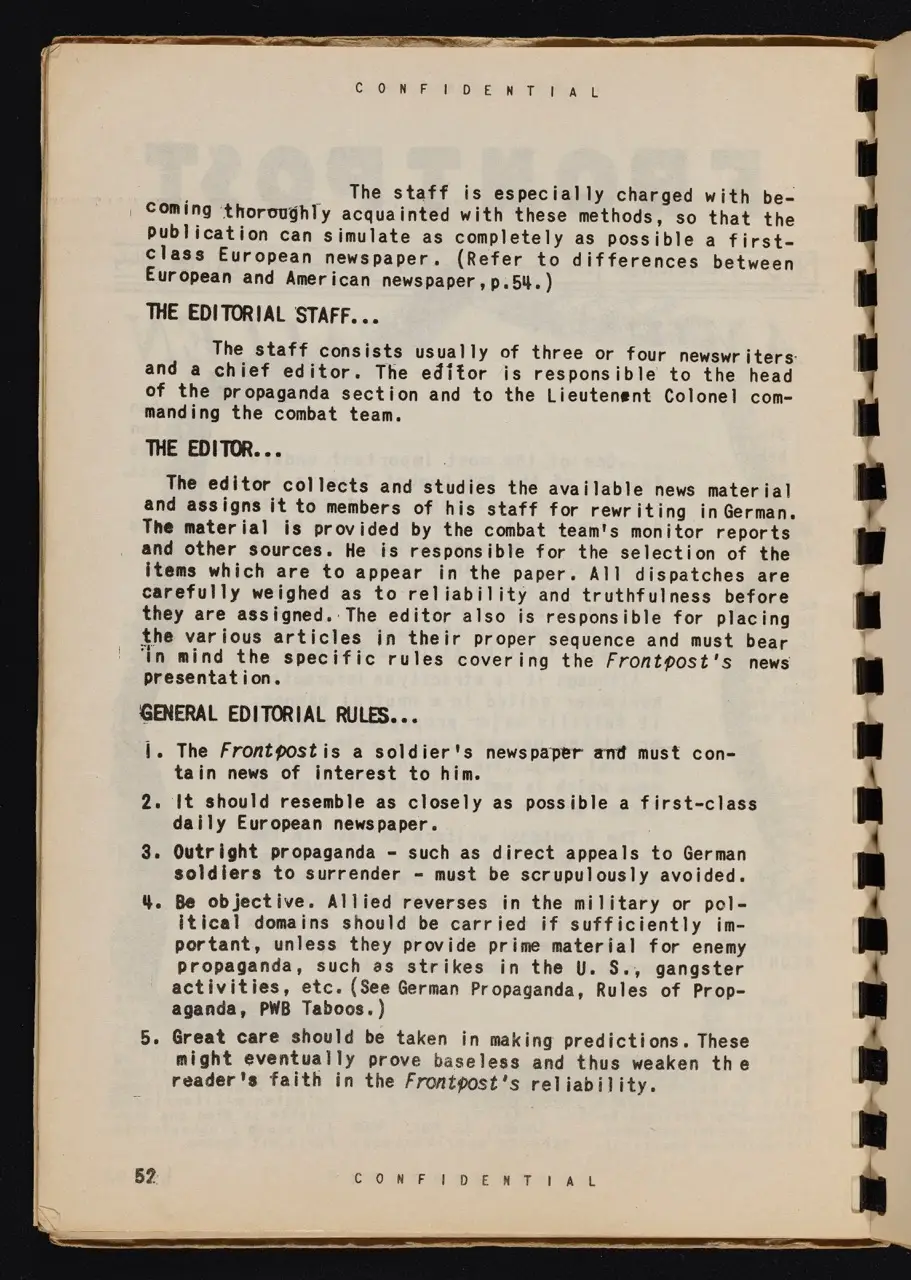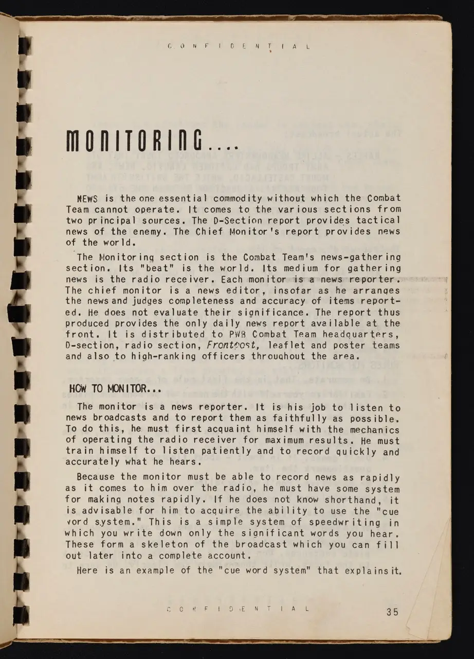 - WWII Context: The manual stresses that radio bulletins and leaflets must respond quickly to evolving battlefield conditions—addressing shifts in morale or leadership.